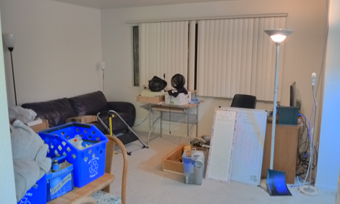 My living room with my roommate's stuff all over. |
